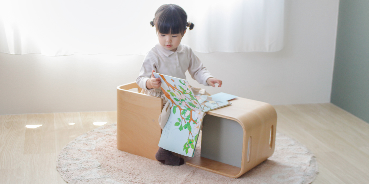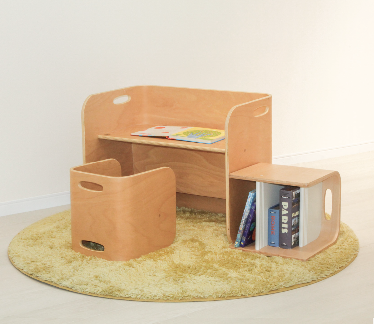 ころんと転がして向きを変えるだけで、子ども用のチェアに変身!