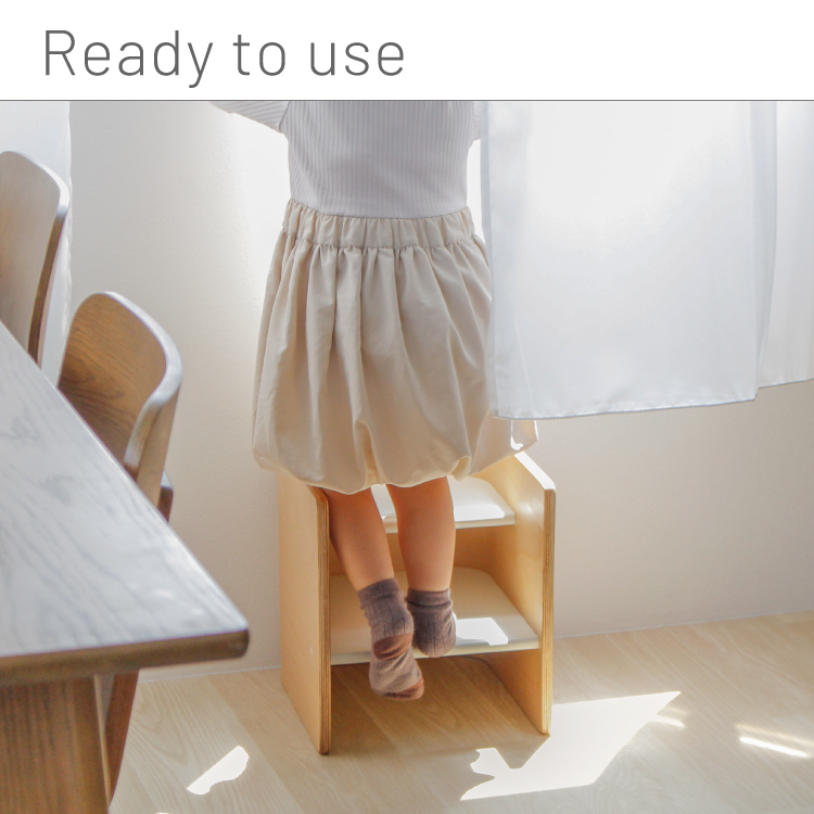 洗面所、キッチン、トイレなど、様々な場面での自主的な行動をサポートする、コンパクトで使いやすいステップ。