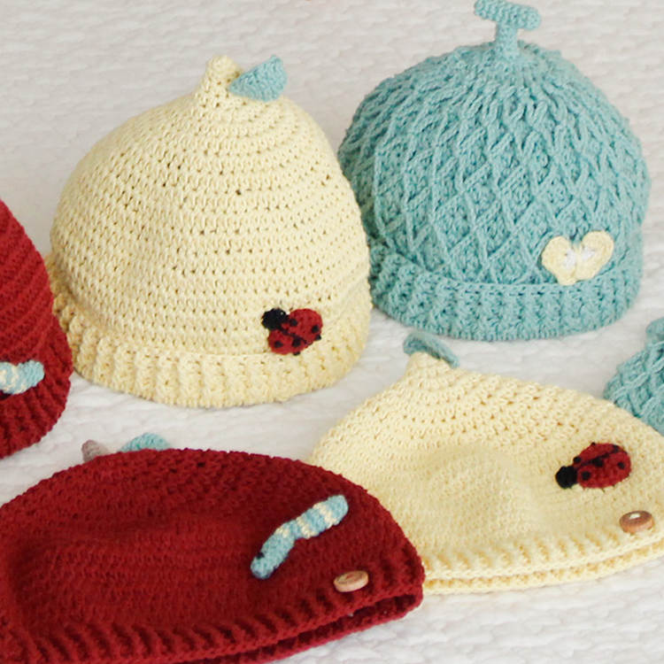 Apple×いもむし、Lemon×てんとうむし、Melon×ちょうちょと、かわいらしいモチーフがキャップのワンポイントに。 -